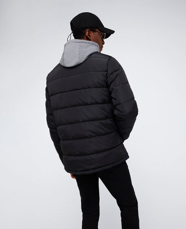 - Shell: 100% polyester; Lining: 100% polyester; Fill: 100% polyester; Hood bib: 100% polyester
