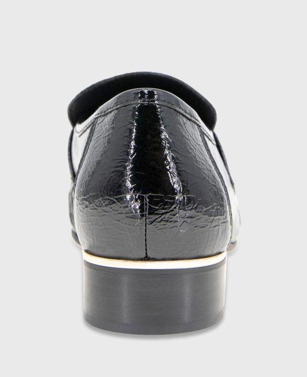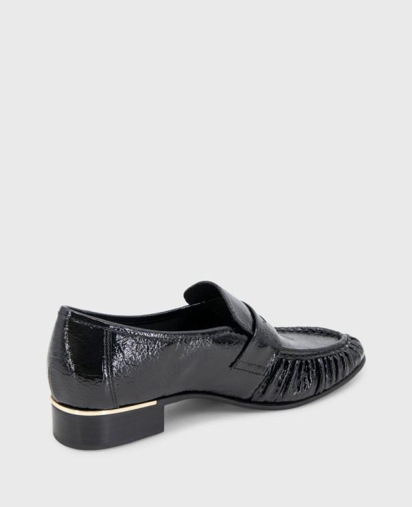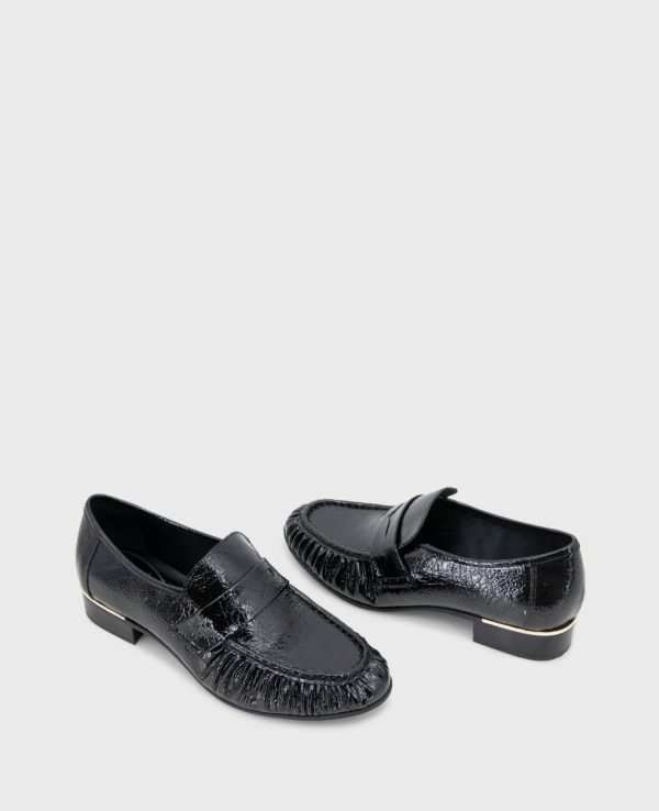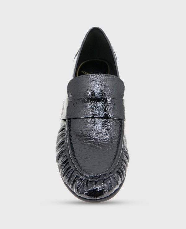 - Sophisticated crinkle patent penny loafer design