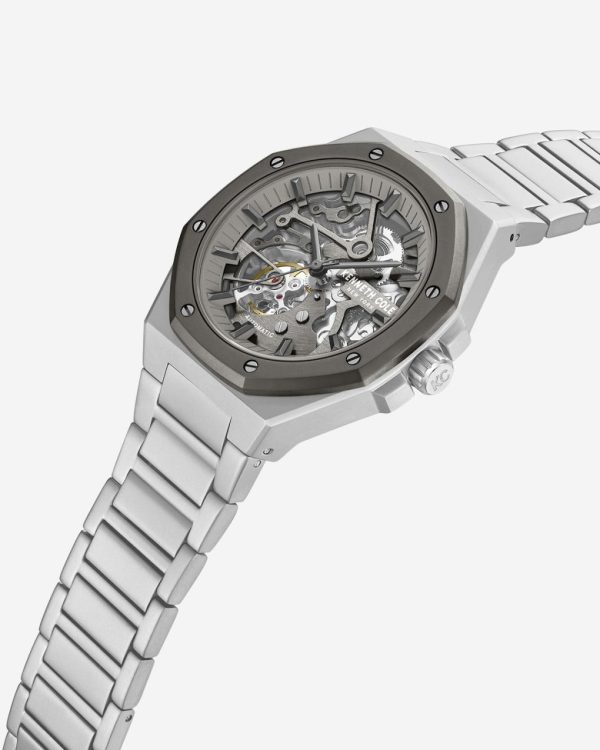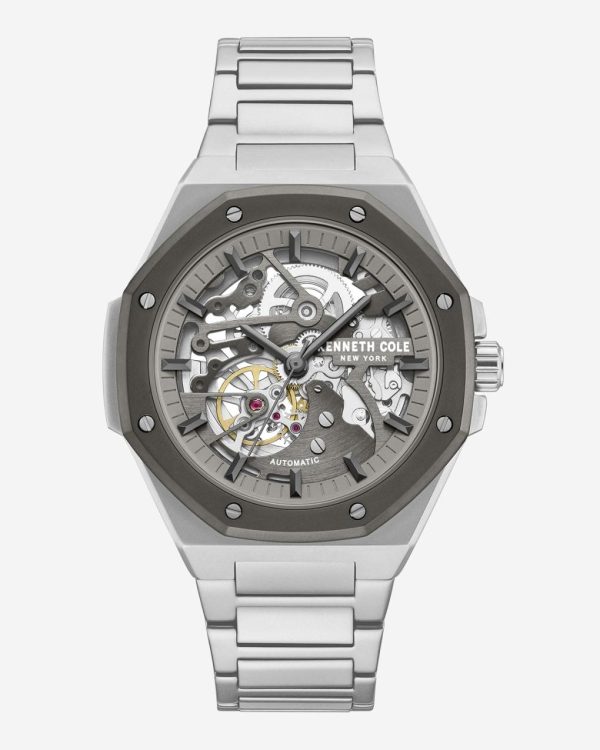 Men Automatic | Kenneth Cole Skeleton Octagonal Automatic Bracelet Watch Gun Silver