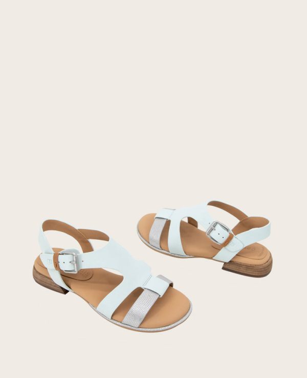 Women Gentle Souls | Kenneth Cole GENTLE SOULS – Haisley Leather Metallic Combo Sandal Light Blue Leather
