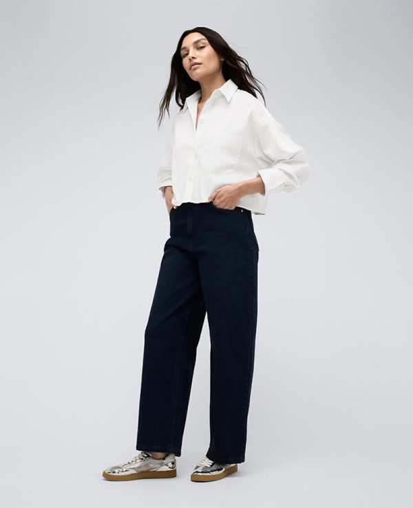 - High rise barrel denim jeans