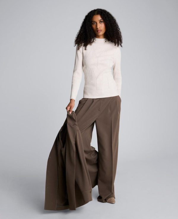 Women Sweaters & Sweatshirts | Kenneth Cole Mock Neck Long Sleeve Rib Chevron Sweater Almond Milk Heather